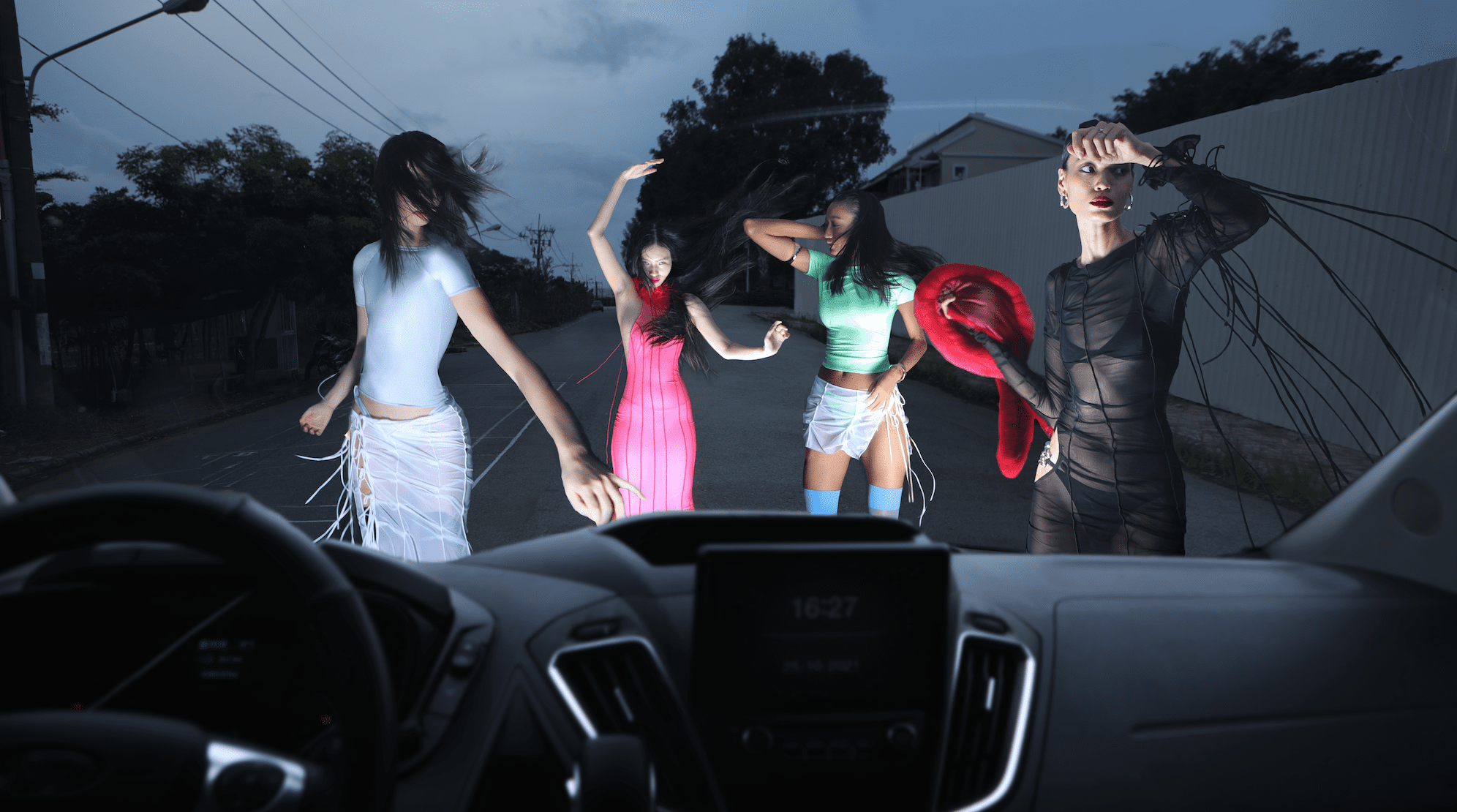 The girls embark on a journey of purification. It’s been a while since they last uttered a word to someone. Thoughts piled up just like their laundry at home. As they step outside, their hair gets soaked in a summer sprinkle. They hold hands and embrace each other’s delicate wet bodies, whispering their deepest secrets. The chaotic sounds from the city inspire in them rhythmic movements, and they swing their bodies to this eccentric sound of music. Reaching a climactic revelation, their souls are cleansed.