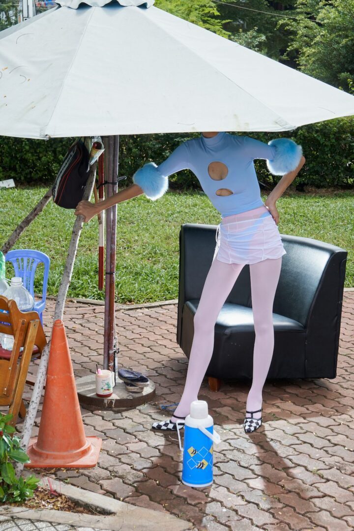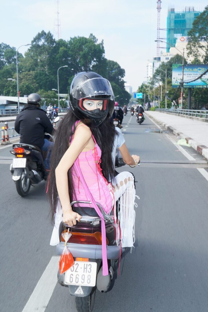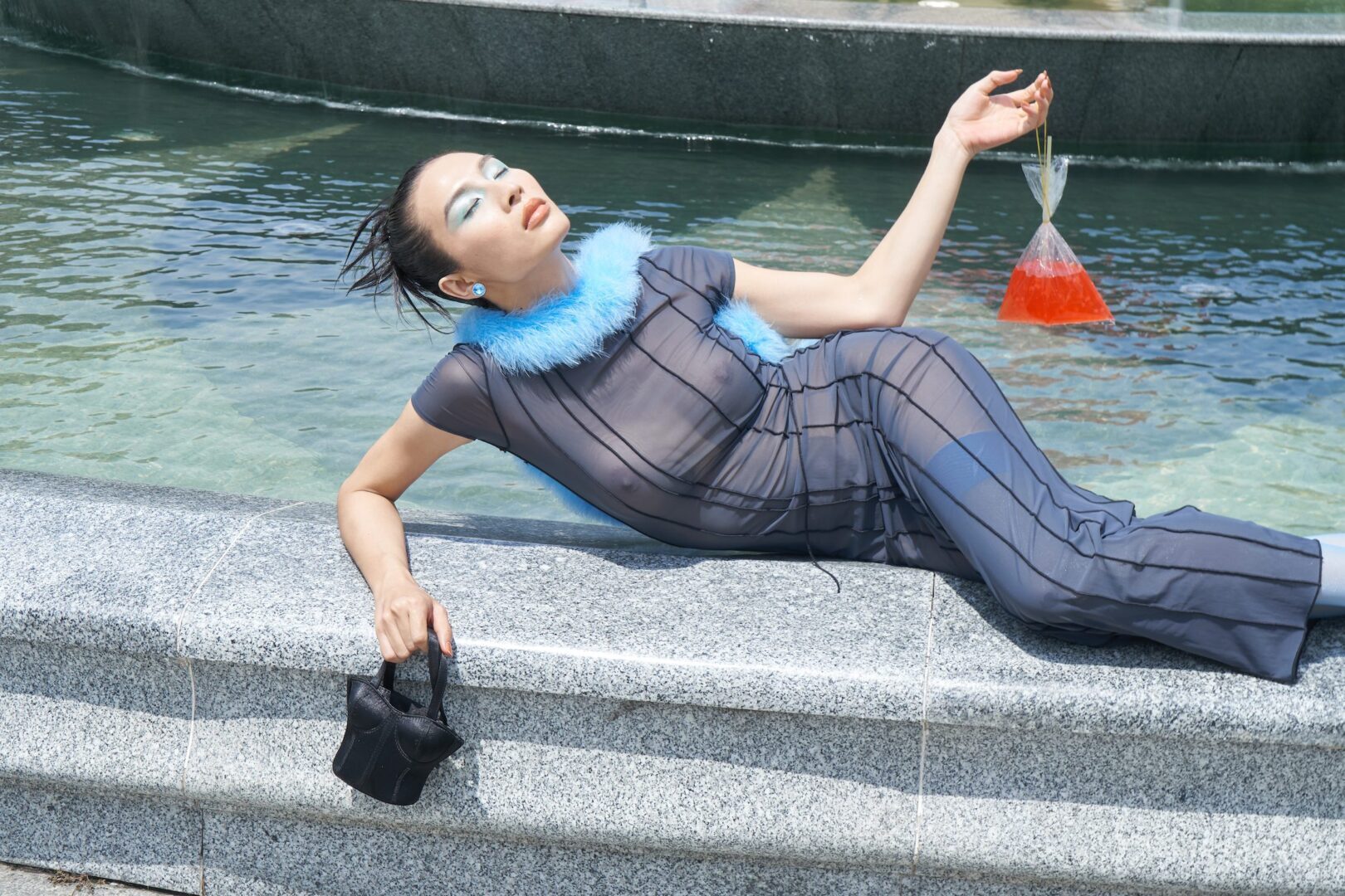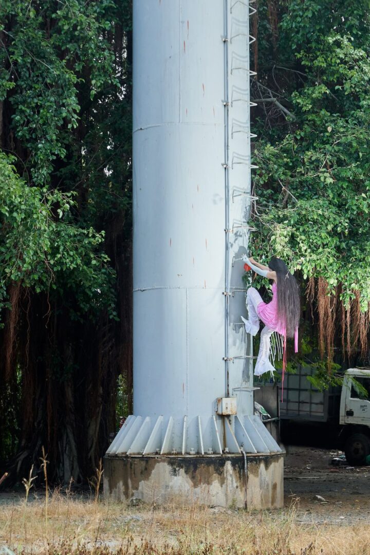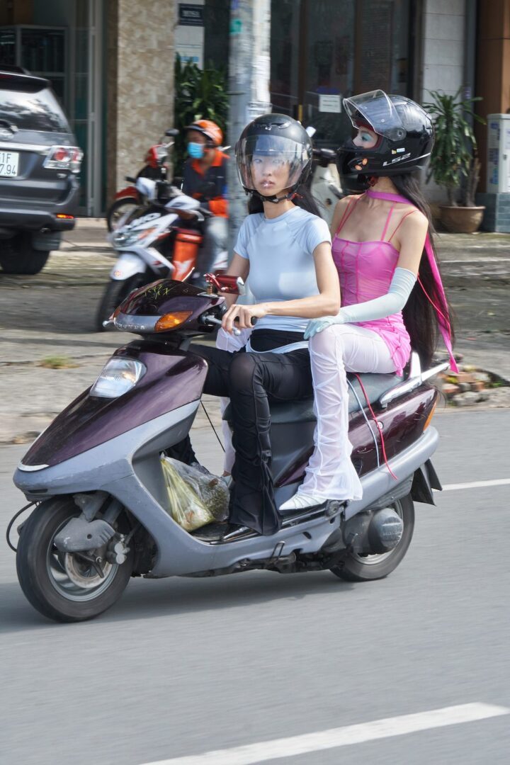 On a day that feels just like any other, two female aliens fell into the Earth. They found themselves in a small jungle that is embraced by a body of water that they had never seen before. Fused with the plants and trees are tall skyscrapers that resemble their home planet. As they are wandering around on their bike, trying to blend in, they find an exotic spiky fruit that they are fascinated with and carry around. Overwhelmed with the newfound wonders of the Earth, they are considering a long vacation here.
