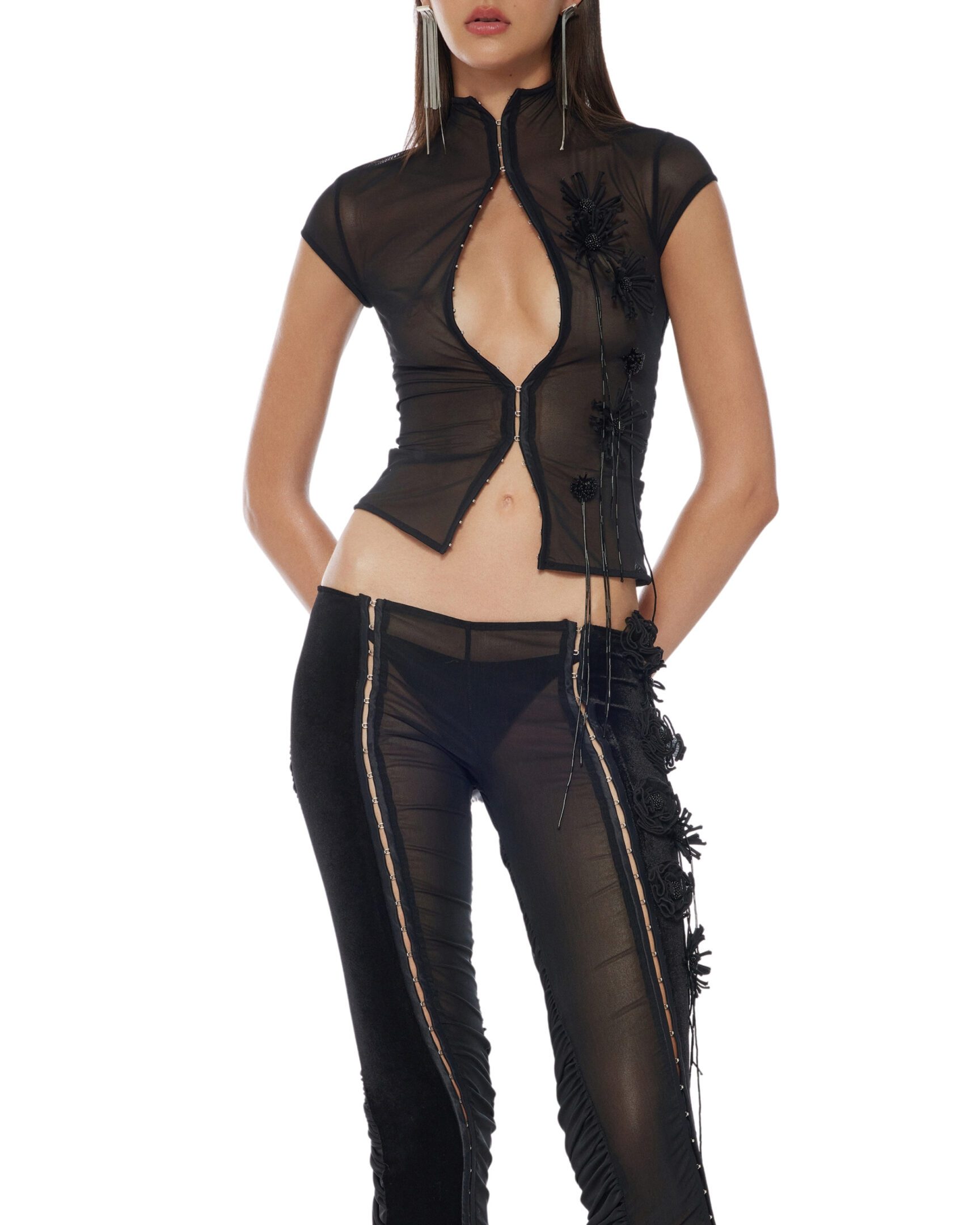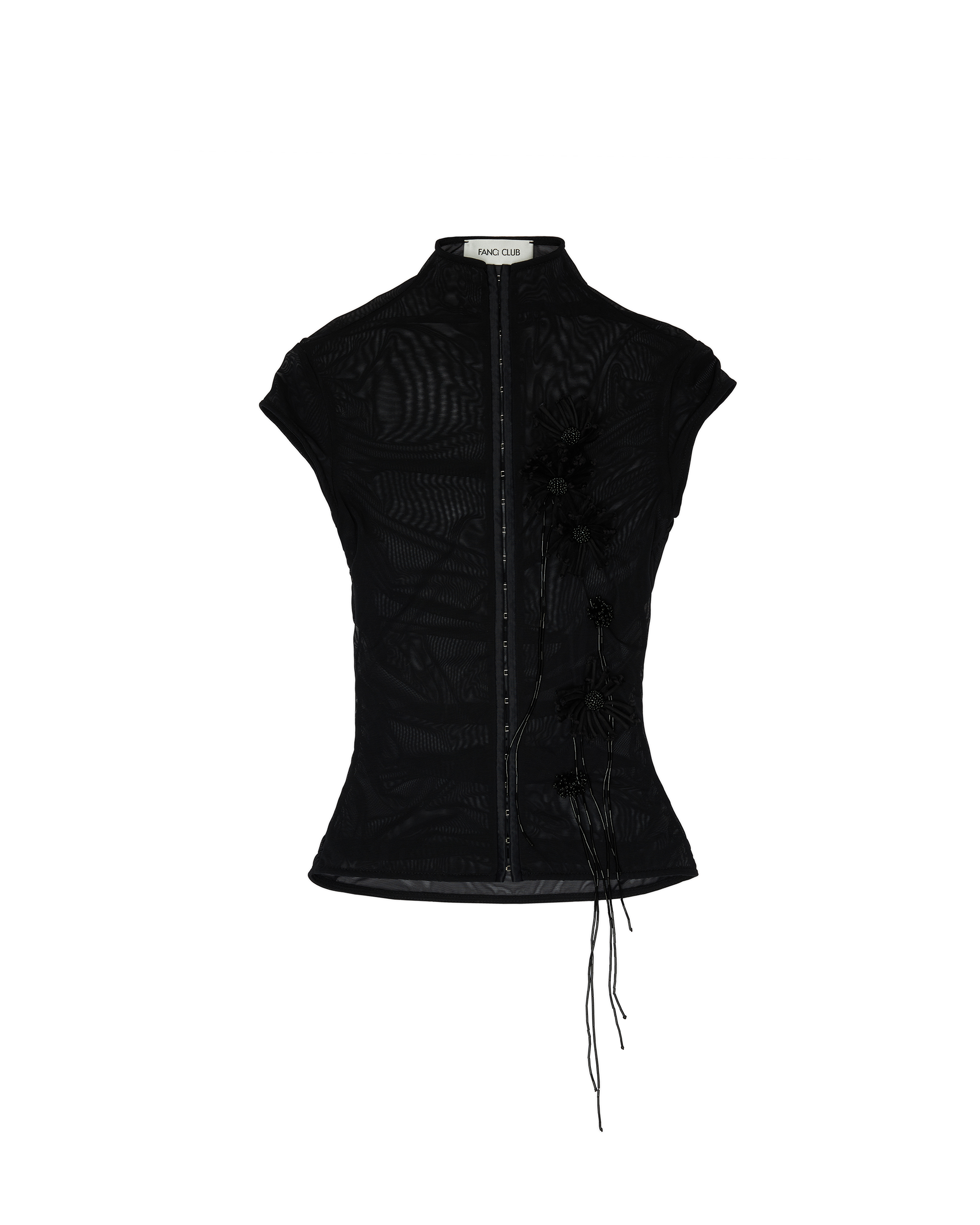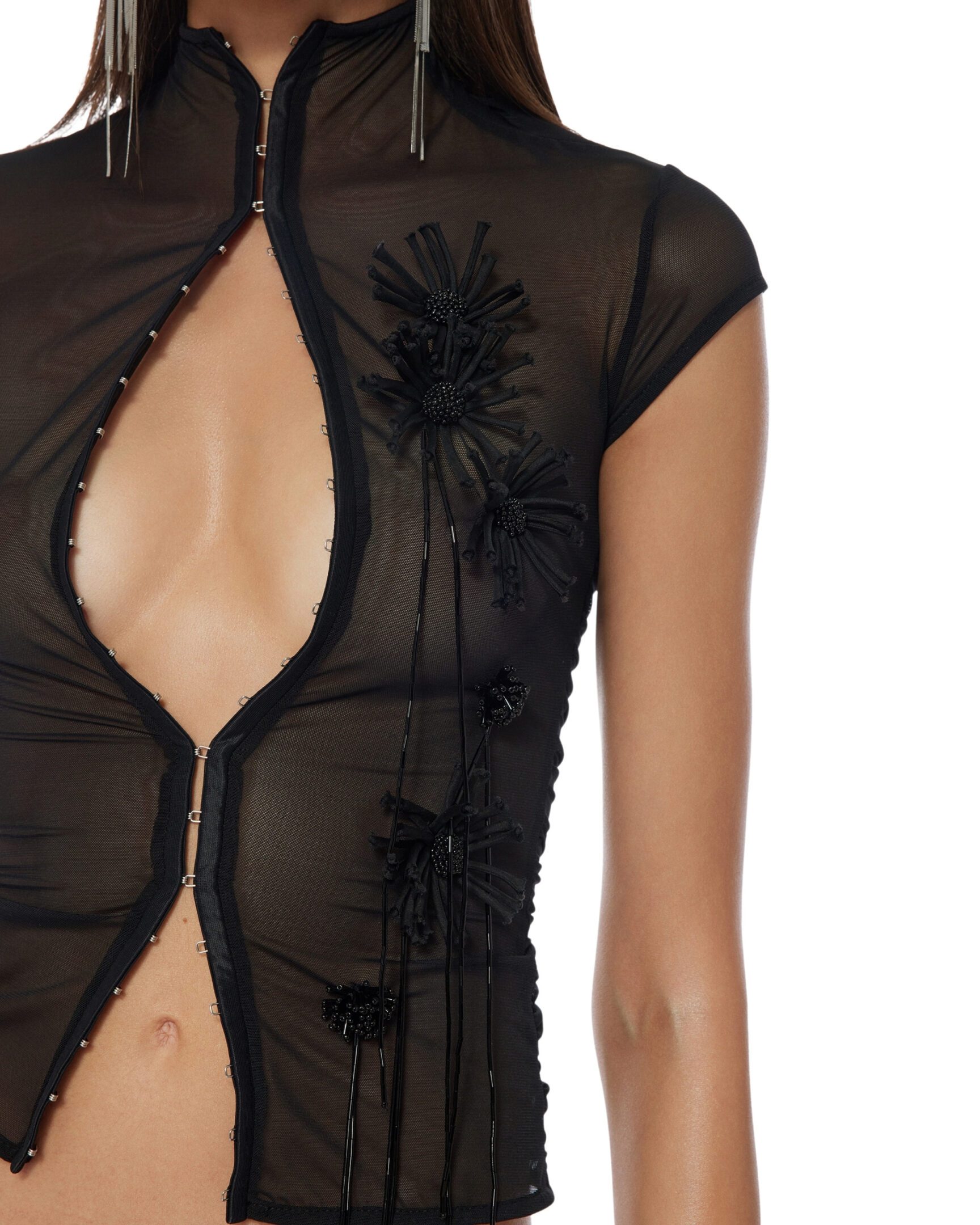 Mock neck mesh top with flower