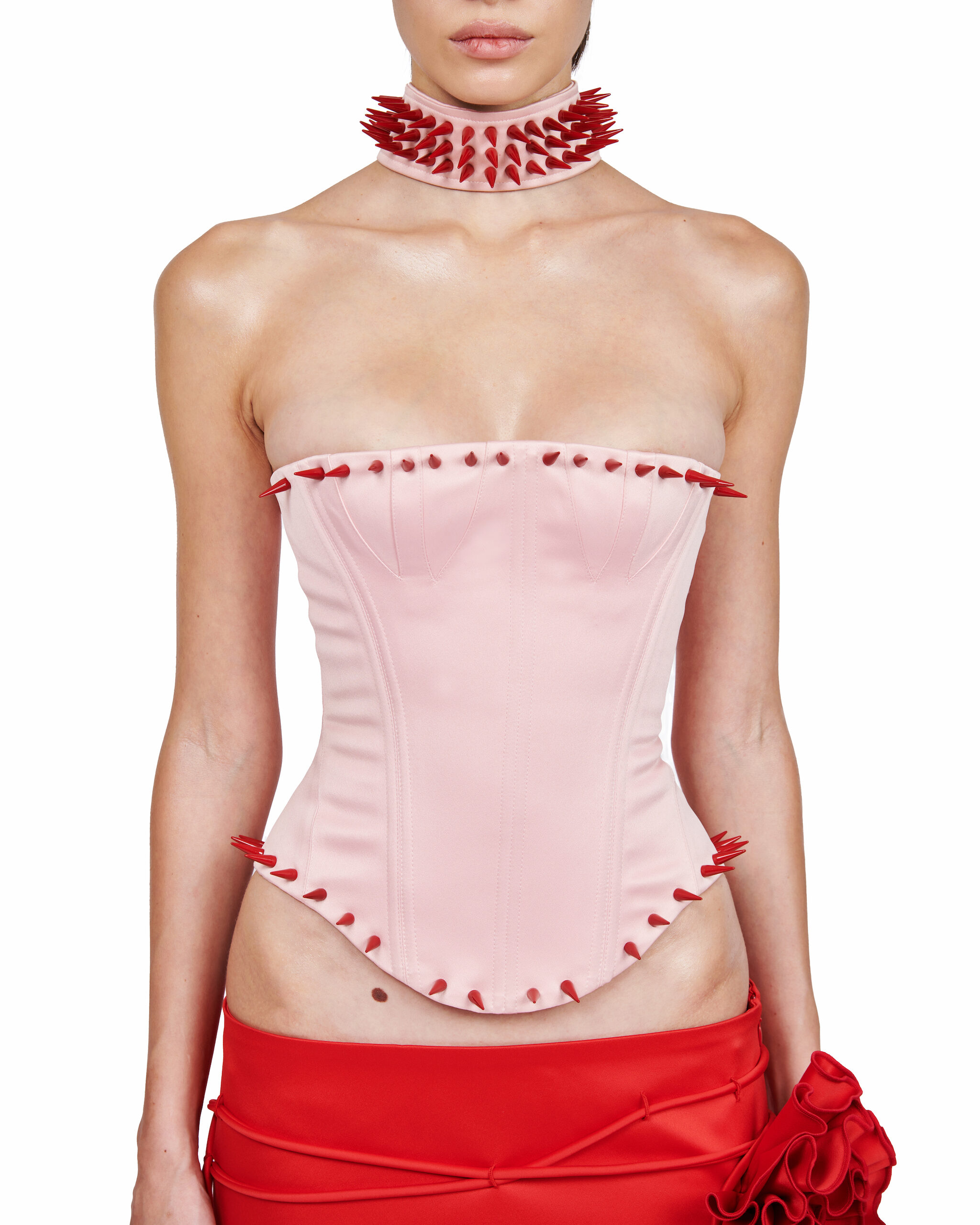 CORSET WITH RED RIVETS DETAILS