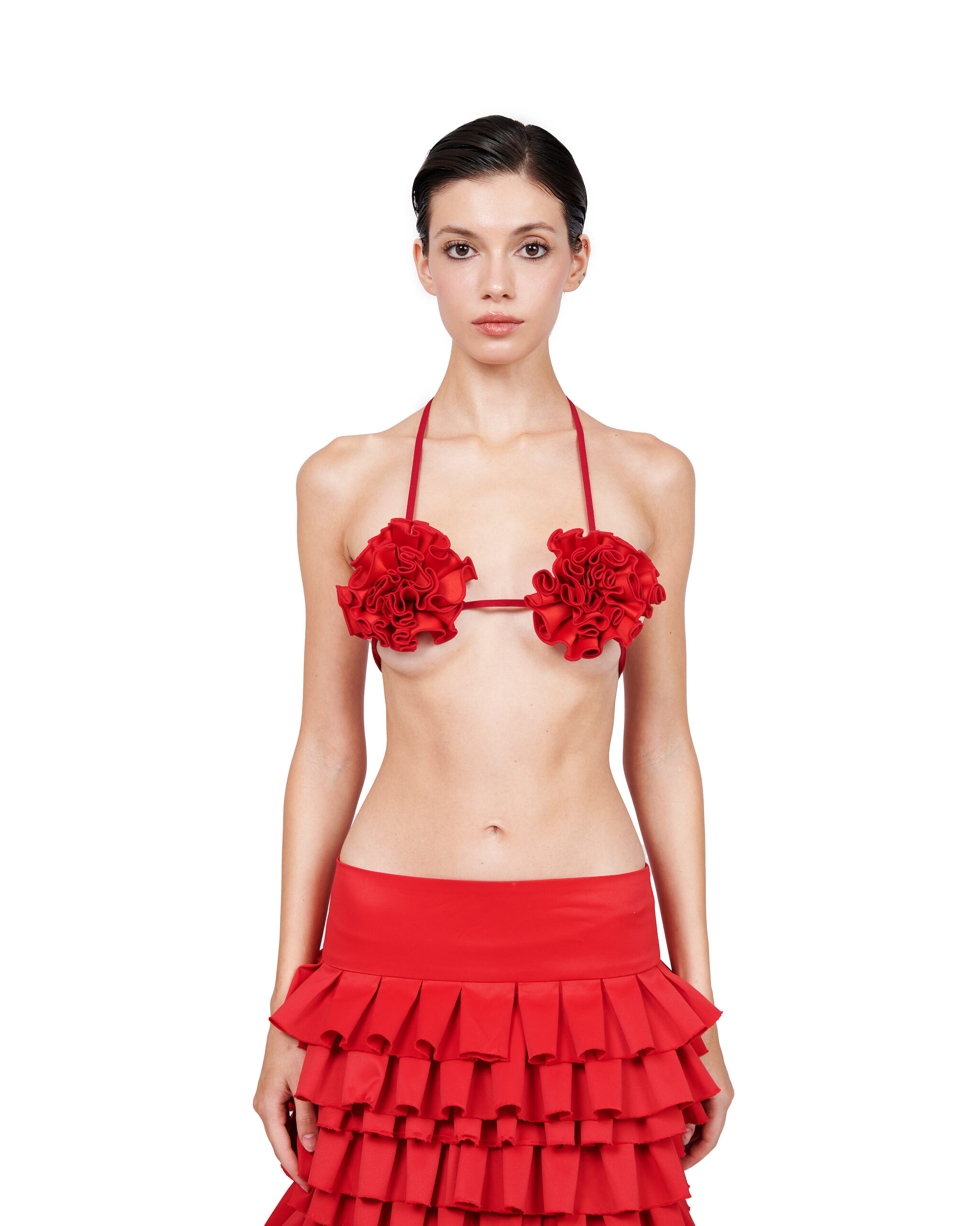 FLORAL-SHAPED RUFFLE BIKINI BRA