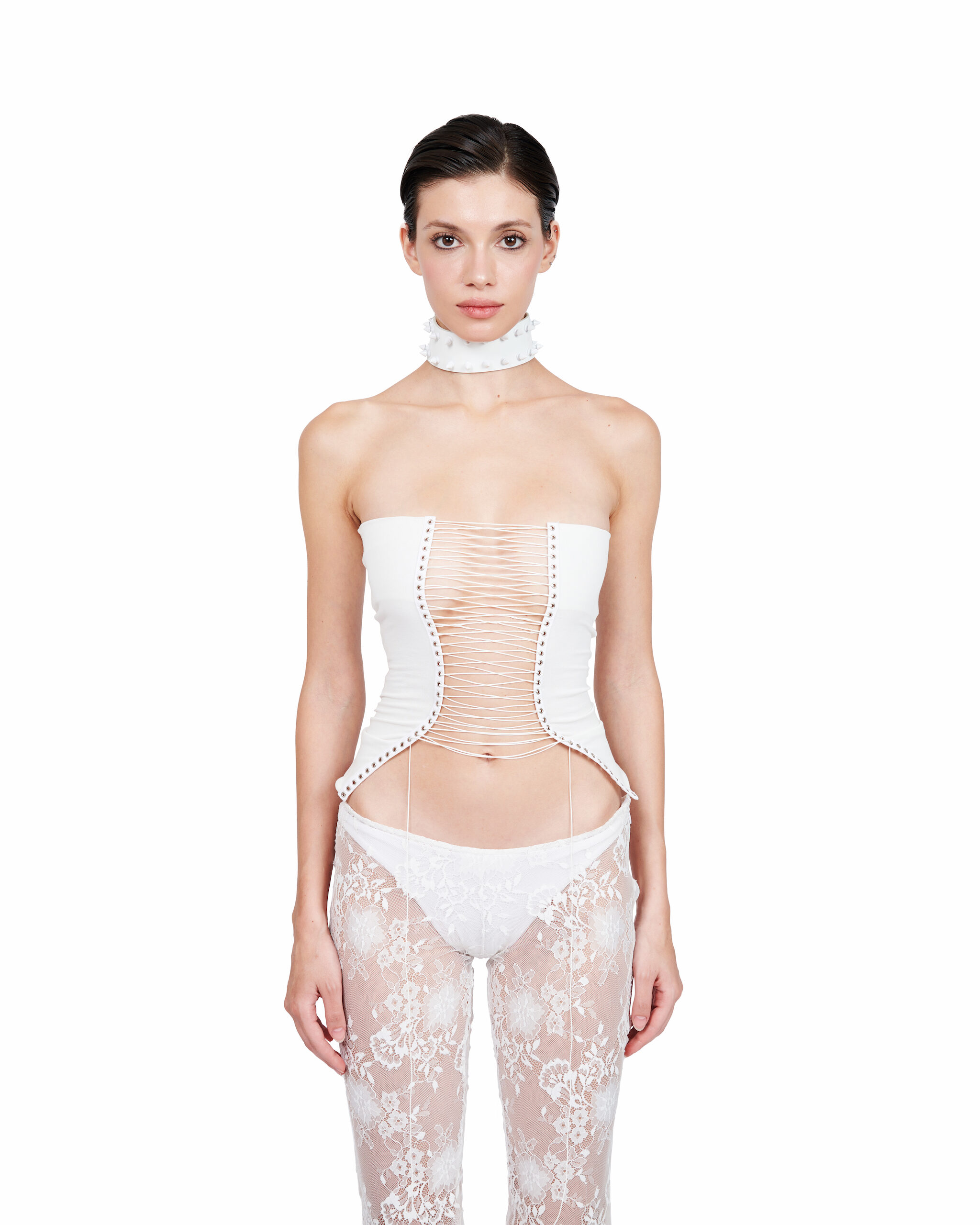 MODEL IN WHITE TOP IS WEARING SIZE XS