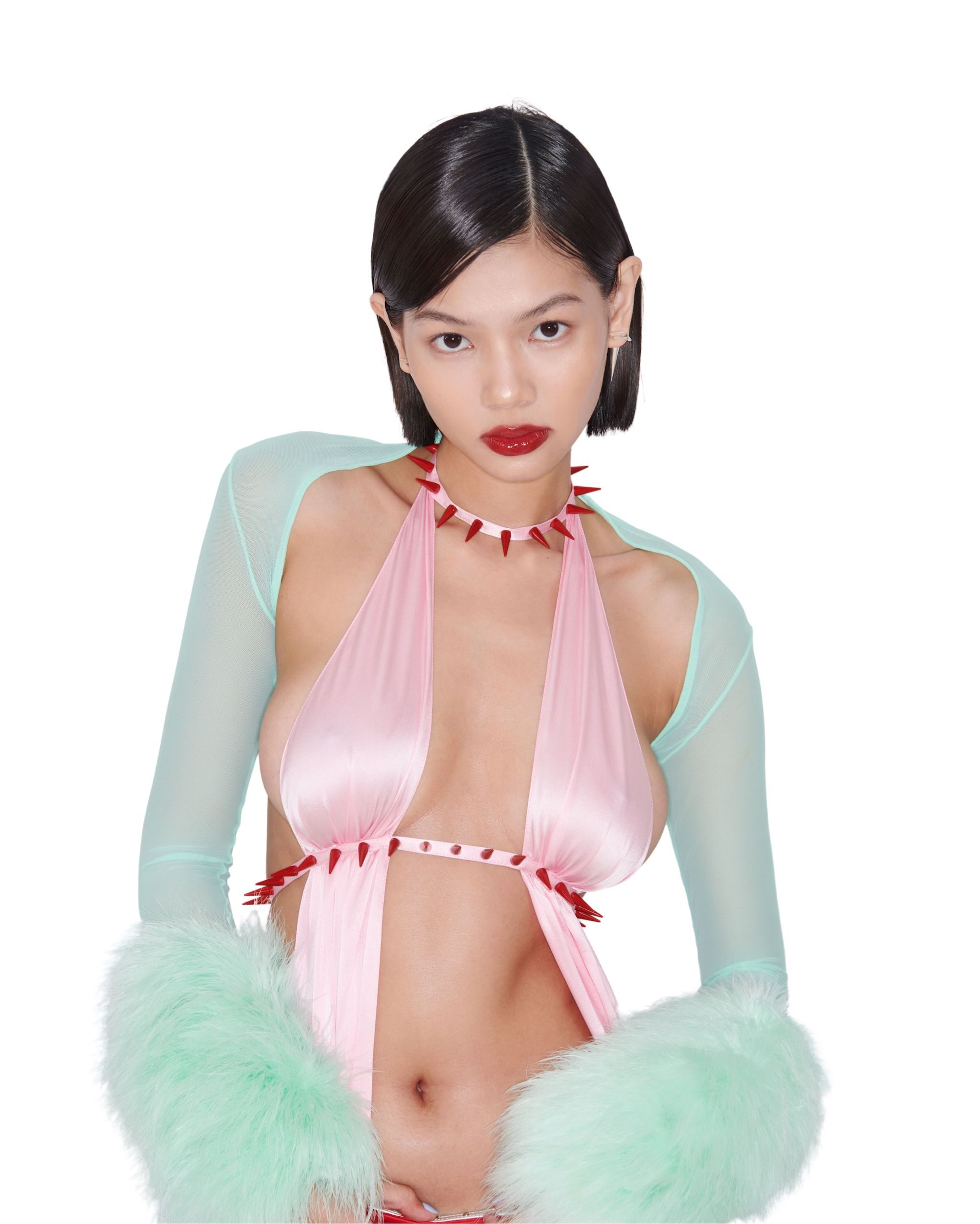 Bolero Cropped Jacket with decorated feather at the sleeves