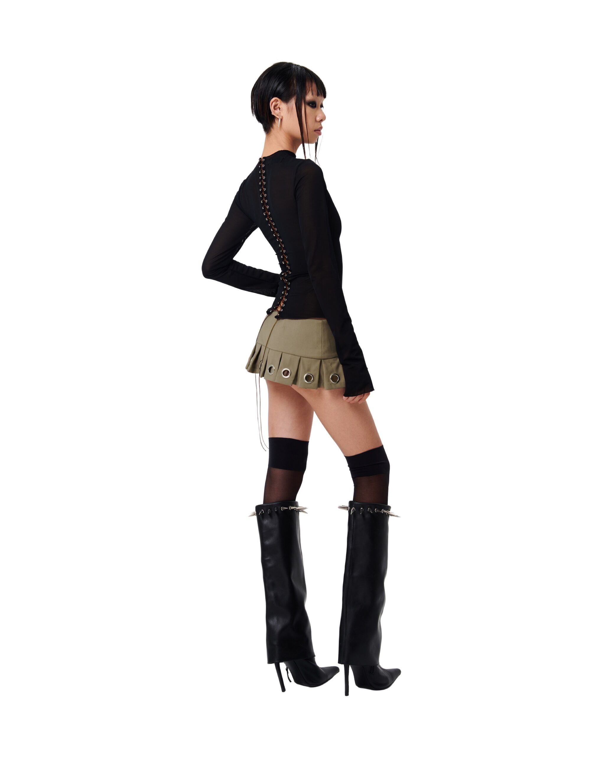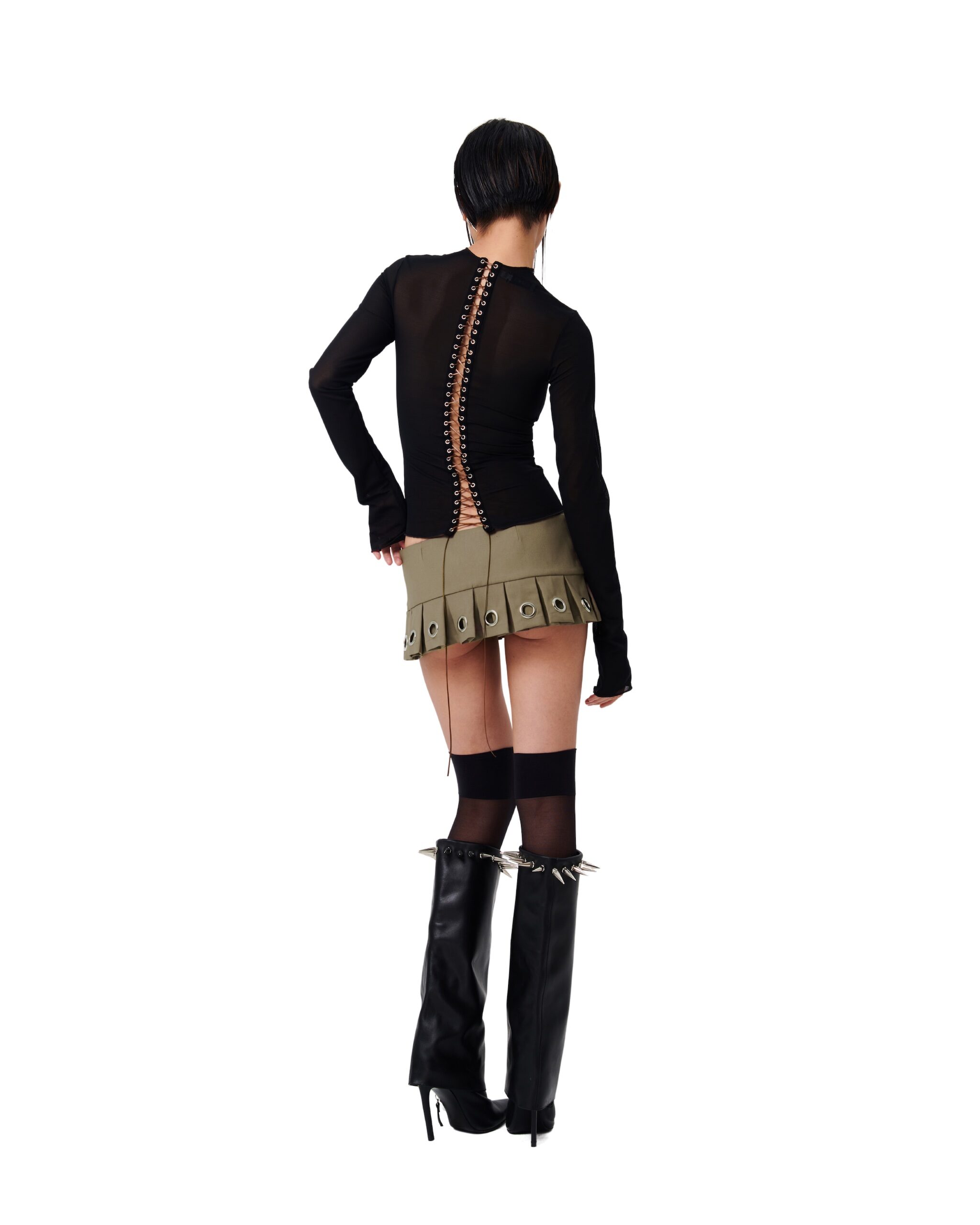 SHEER TOP WITH LACE-UP BACK DETAILS