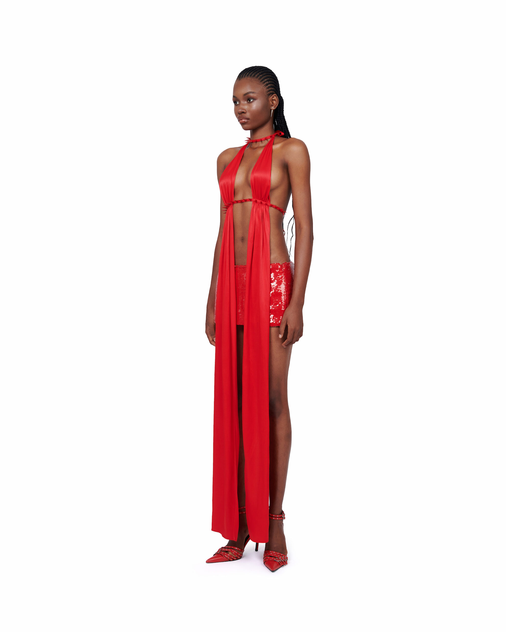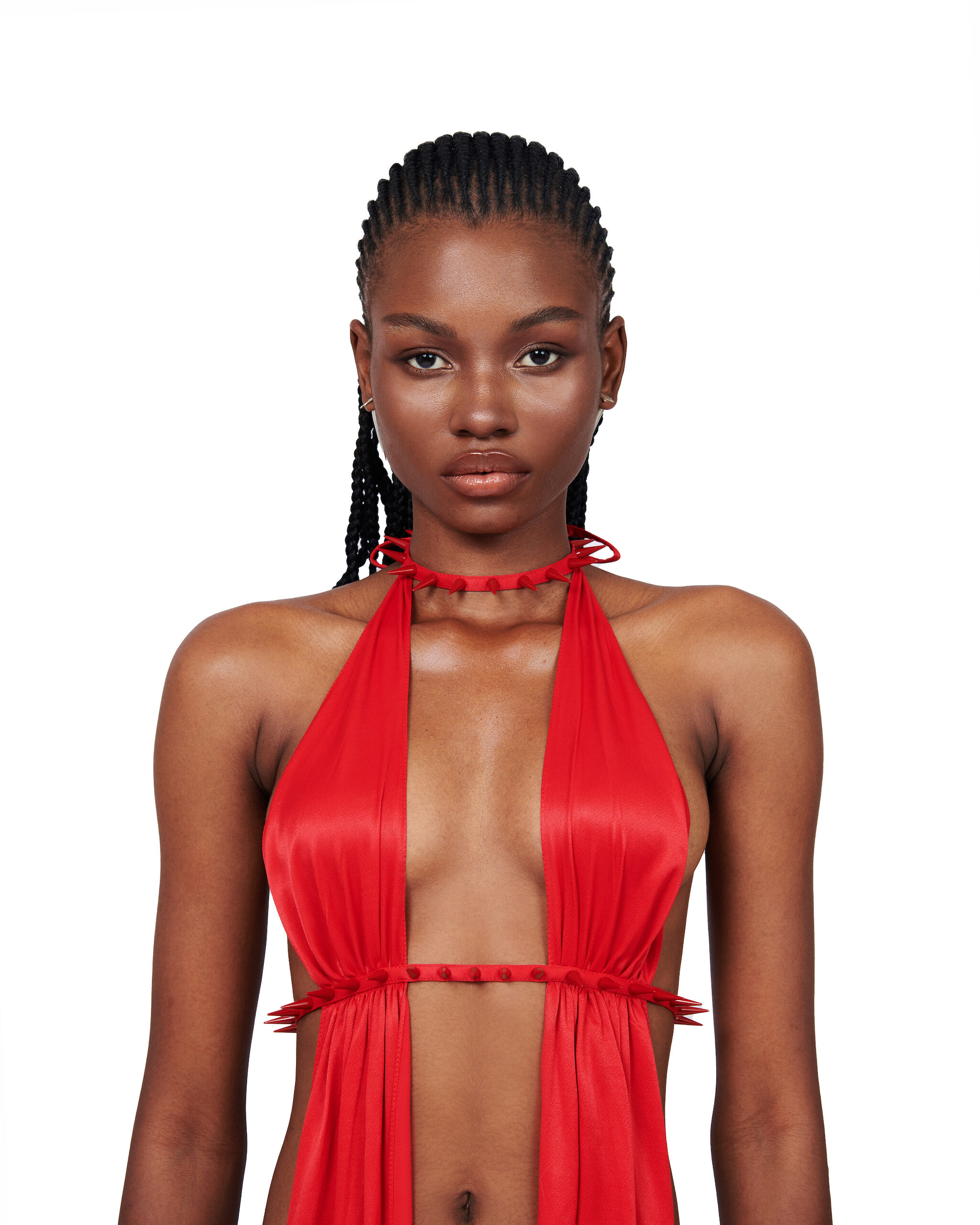 DEEP-CUT HALTER TOP WITH SPIKE DETAILS