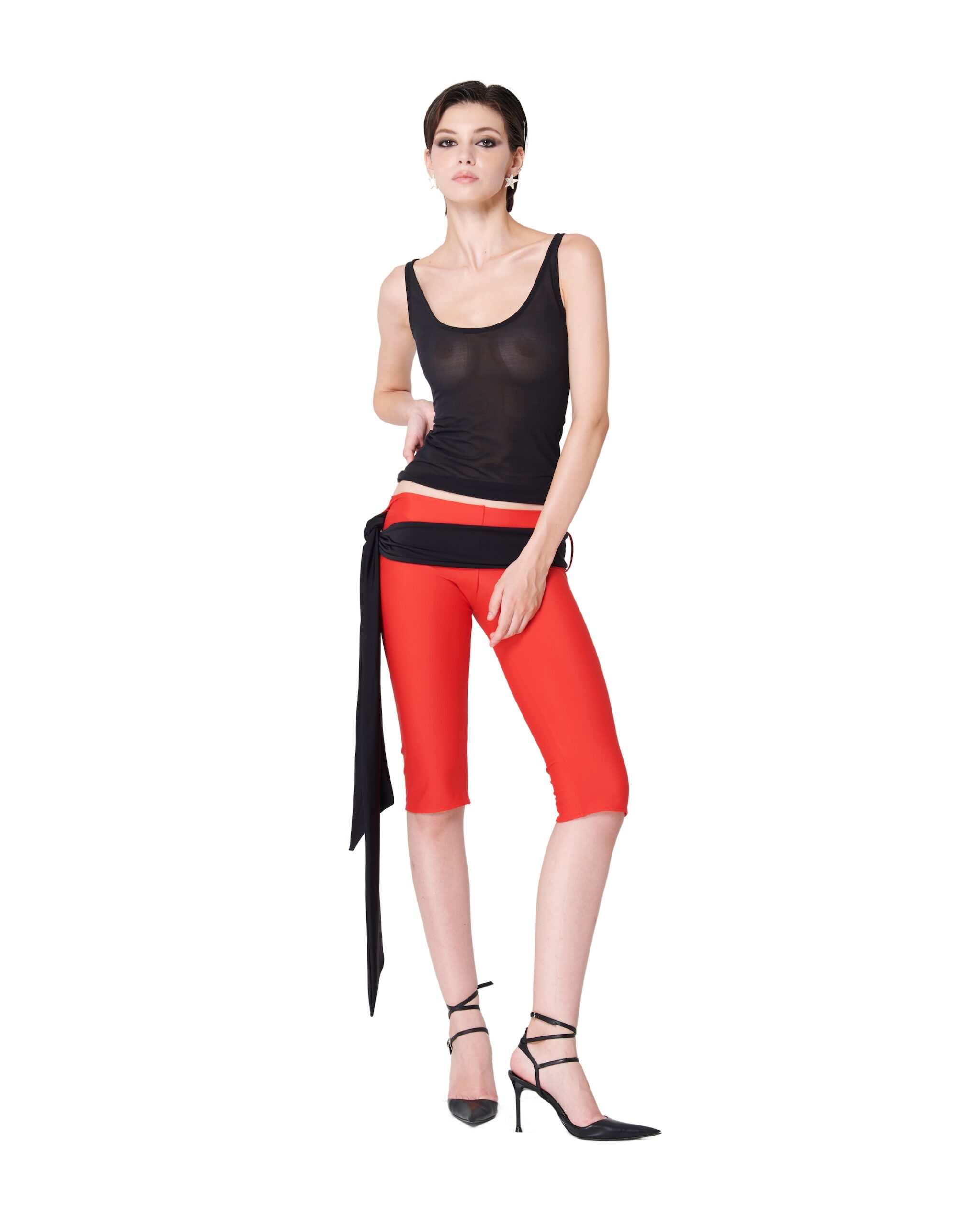 Capri pants with ribbon belt
