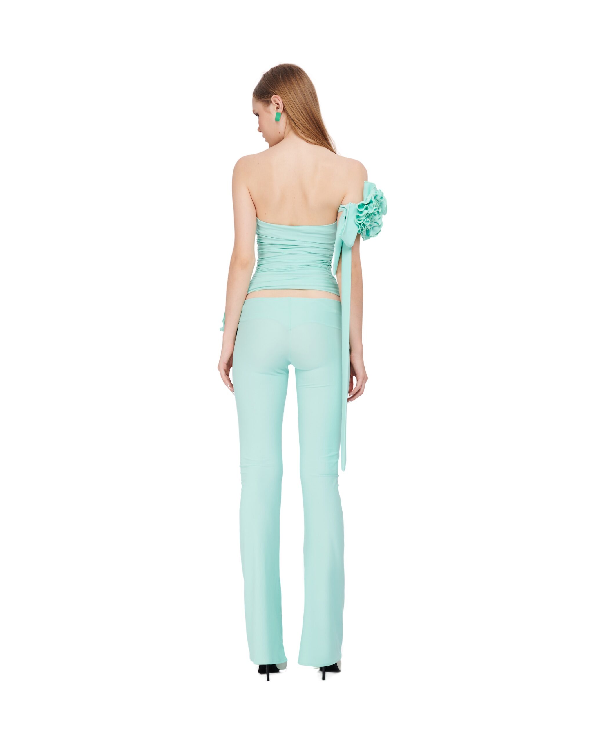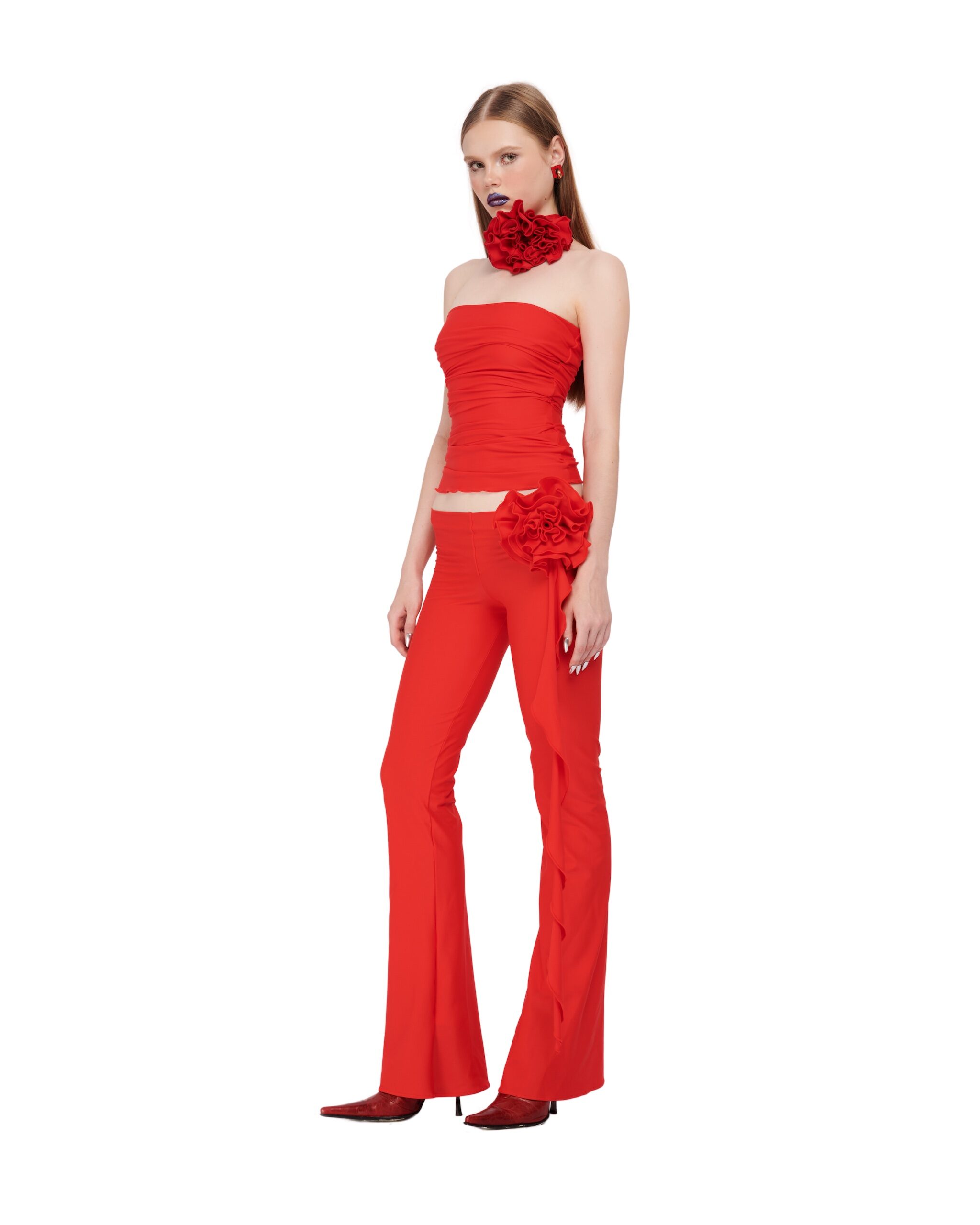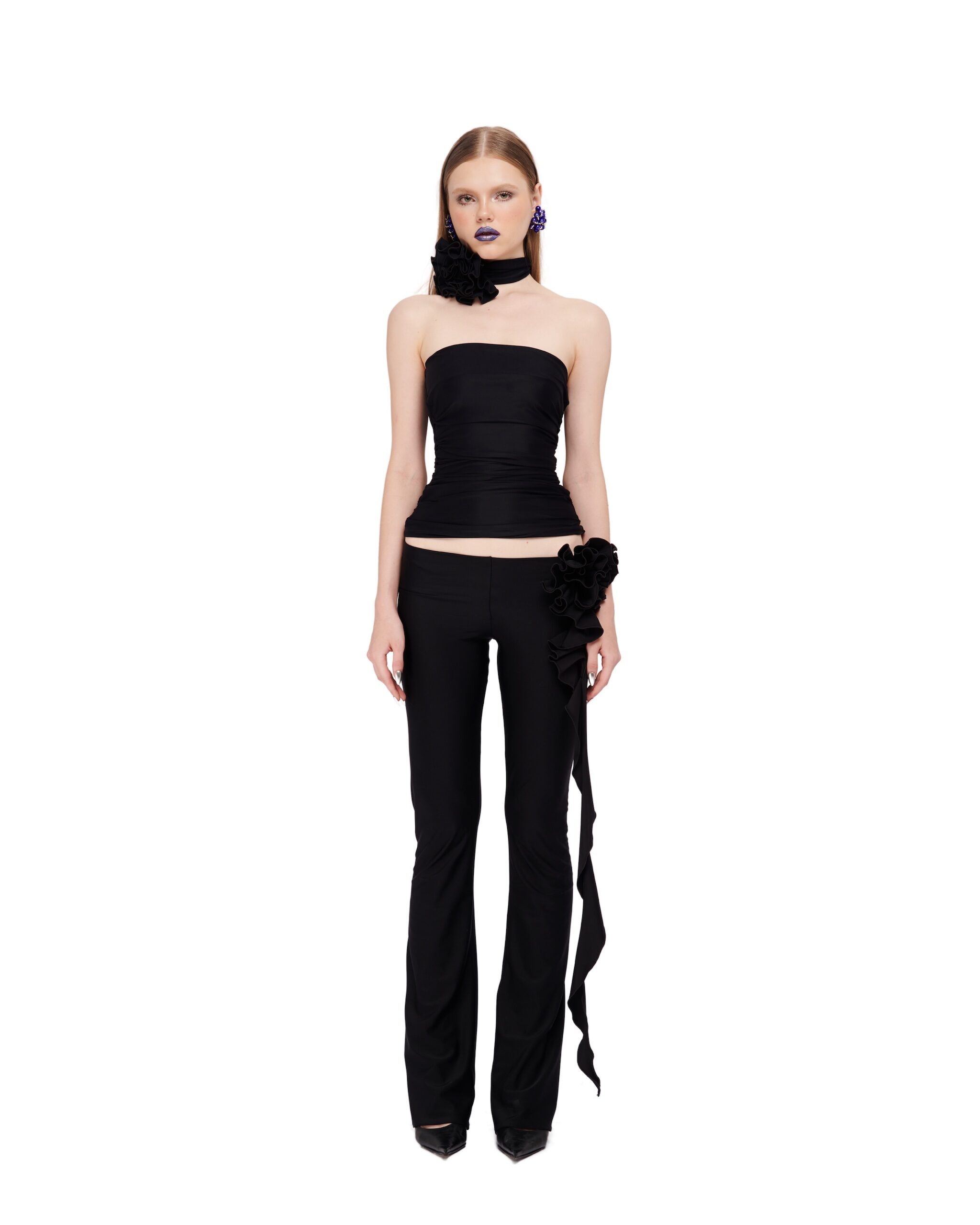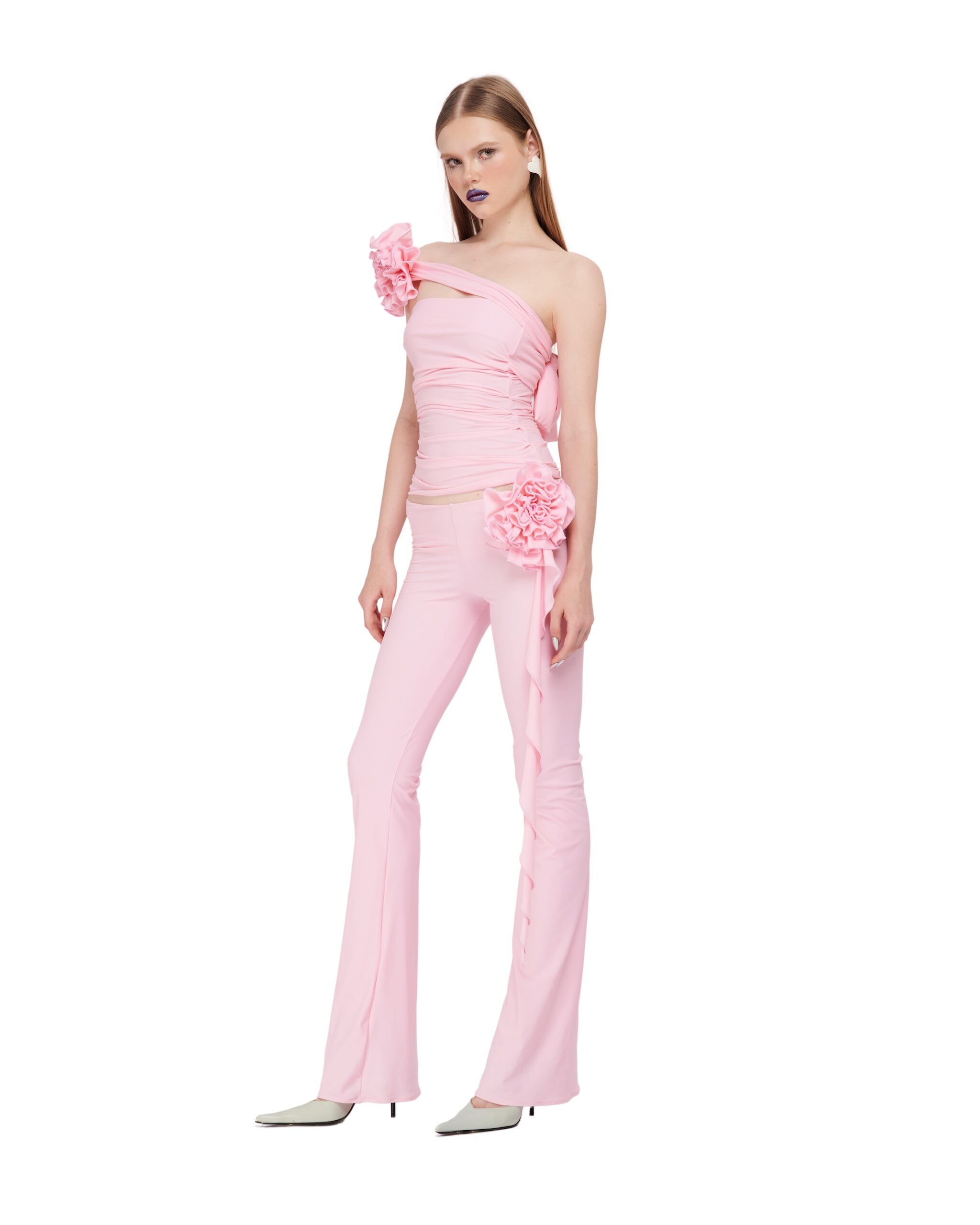 Nylon Spandex pants with decorated rosetta and ruffle.
