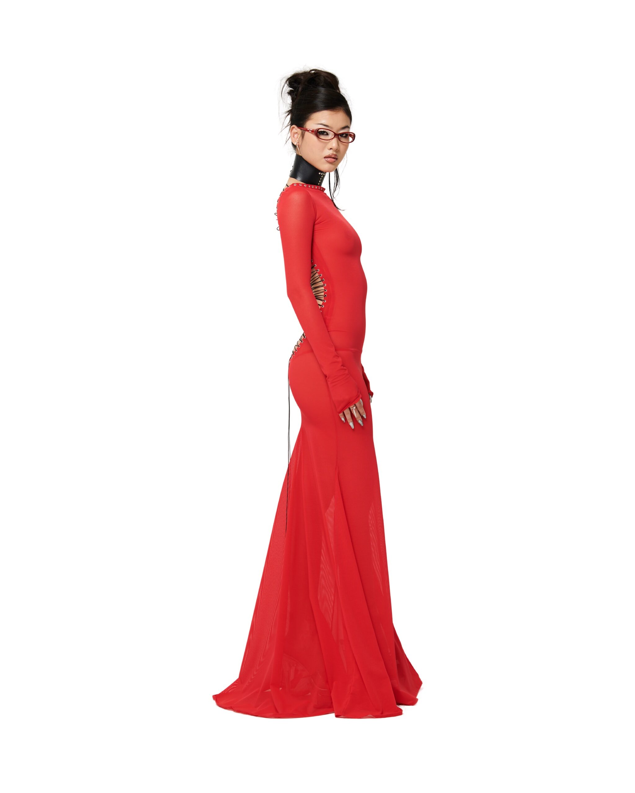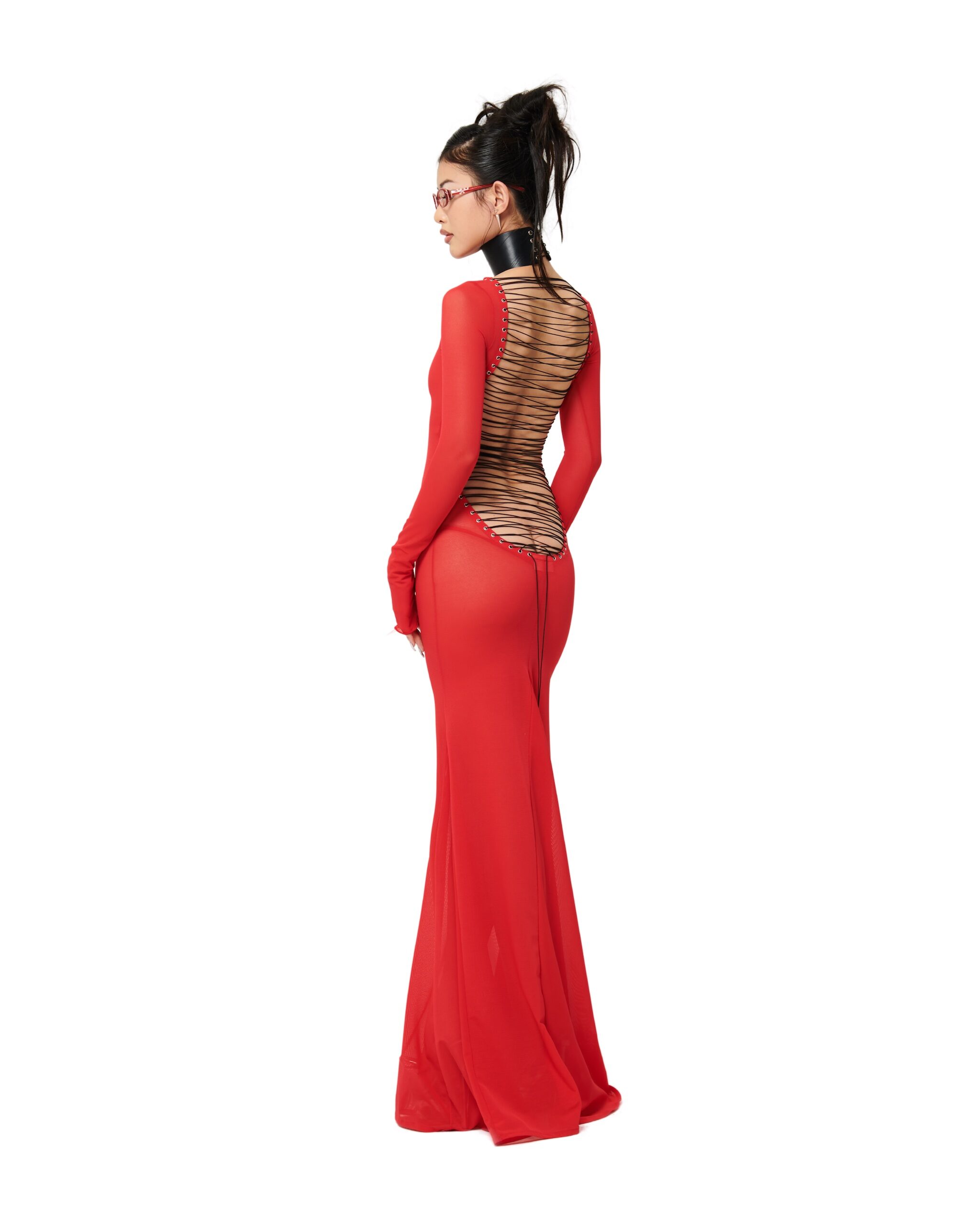LONG SLEEVE BACKLESS DRESS WITH ADJUSTABLE LACE UP BACK
